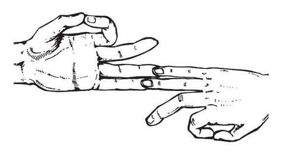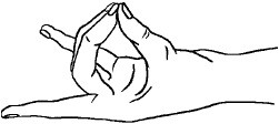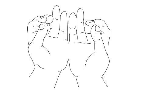 Как проводить? Дотроньтесь большим пальцем до среднего и безымянного, а указательный палец и мизинец вытяните. Необходимо выполнять трижды в день по 10 минут.