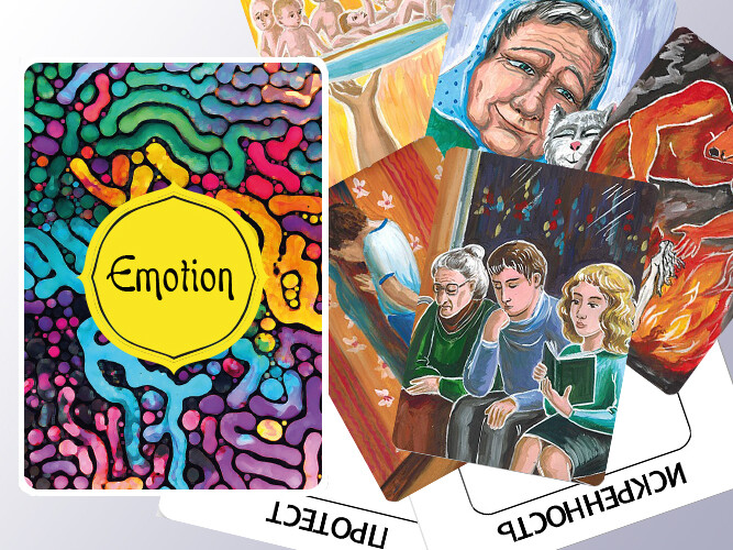 Колода «Эмоции» (Emotions) дает доступ к глубинным причинам событий вашей жизни и вашим реакциям на них. Колода состоят из двух колод, в которых возможна 6561 комбинация карт.